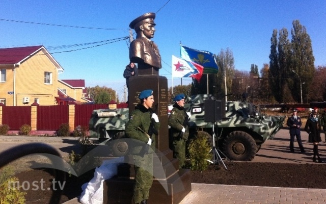 Бюст генерала стоит на гранитном постаменте на месте будущего сквера на одноименной улице в поселке Сырский Рудник. Средства на него собирали липецкие десантники и члены регионального отделения партии "РОДИНА".