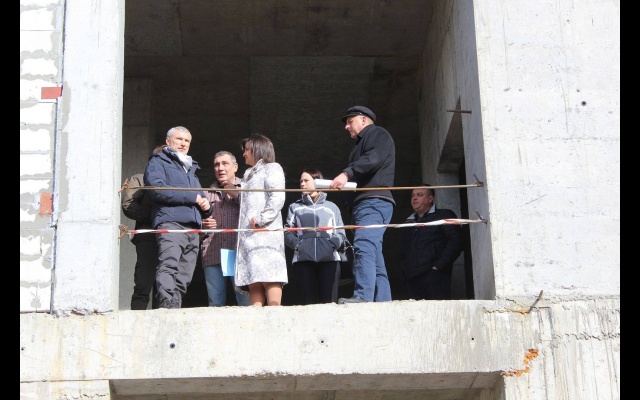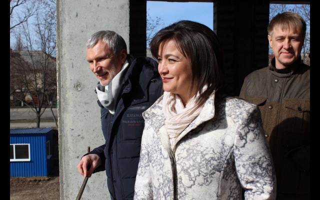 Также к осмотру строительства присоединились ректор Приднестровского госуниверситета Галина Сандуца и декан медфакультета Ростислав Окушко, так как на первом этаже будут располагаться учебные лаборатории медицинского факультета ПГУ. Ректор с большим удовлетворением отметила простор будущих помещений.