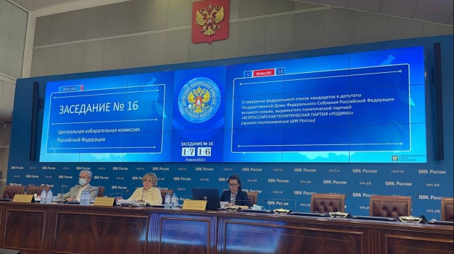 9 июля 2021 г. на своем заседании Центральная избирательная комиссия РФ заверила федеральный список кандидатов в депутаты Государственной Думы восьмого созыва, выдвинутый Всероссийской политической партией "РОДИНА".