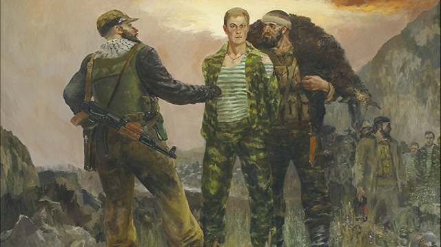 Картина из собрания Центрального Пограничного Музея ФСБ России ''Подвиг рядового Евгения Родионова''. С.Смирнов