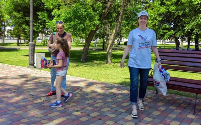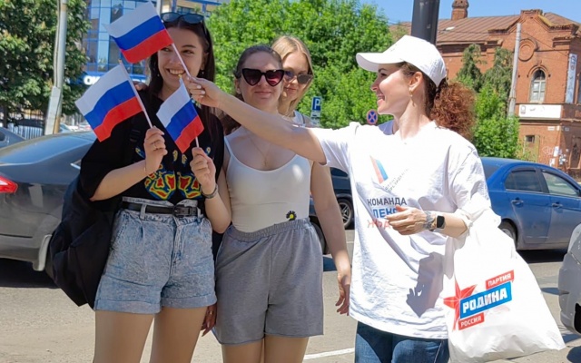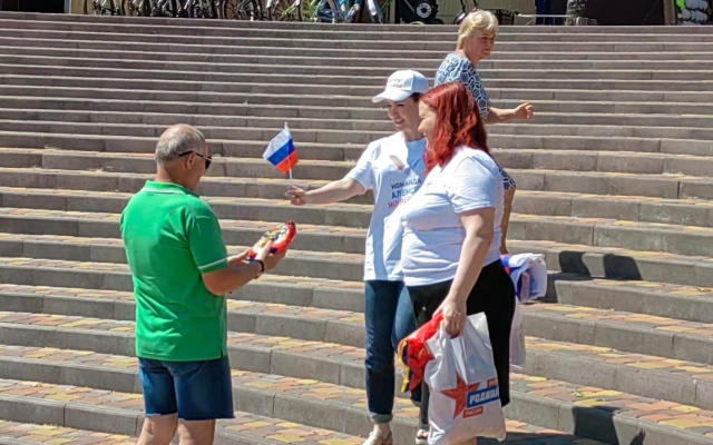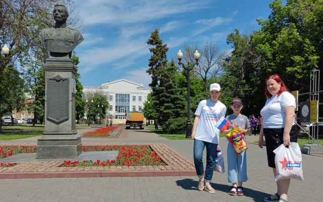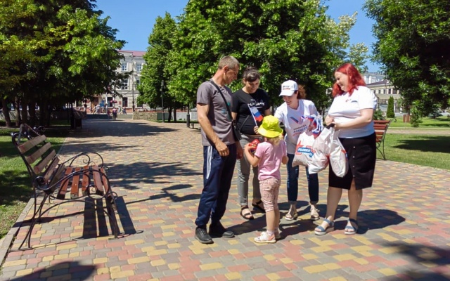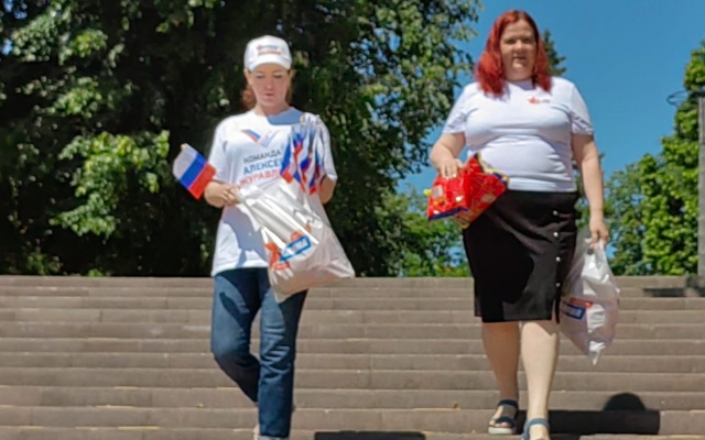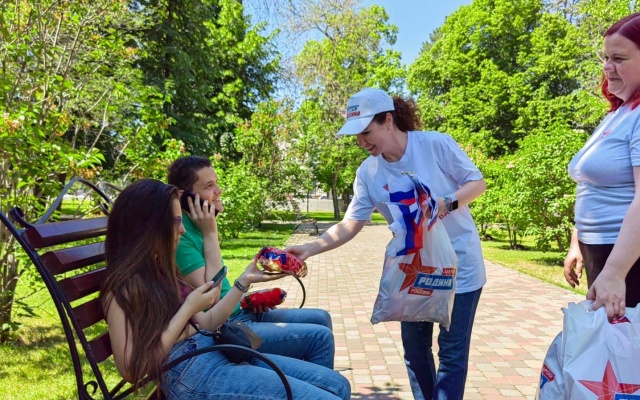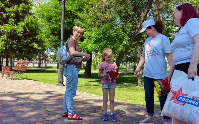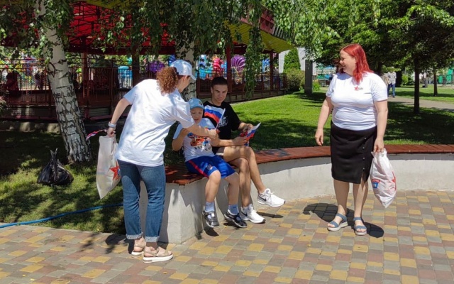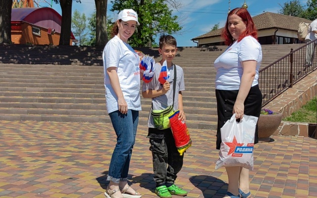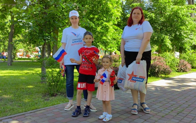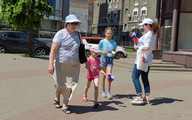 Сегодня на улицах города сотрудники Приемной депутата Государственной Думы Алексея Журавлева поздравили жителей с приближающемся праздником и вручили маленьким горожанам сладкие подарки, а также один из символов нашего государства – флаг Российской Федерации.