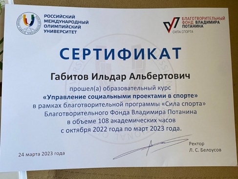 Лидер Ульяновской «РОДИНЫ» Ильдар Габитов получил очередной сертификат об обучении в Российском международном олимпийском комитете.