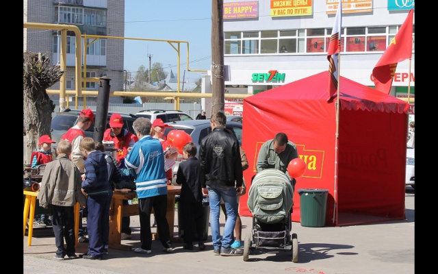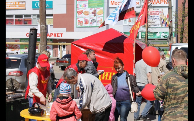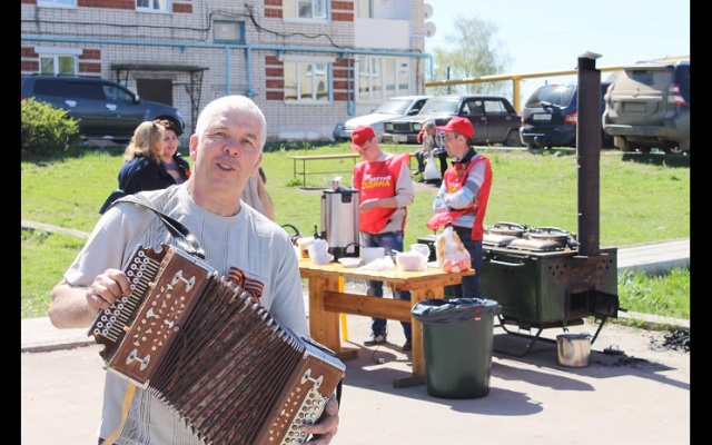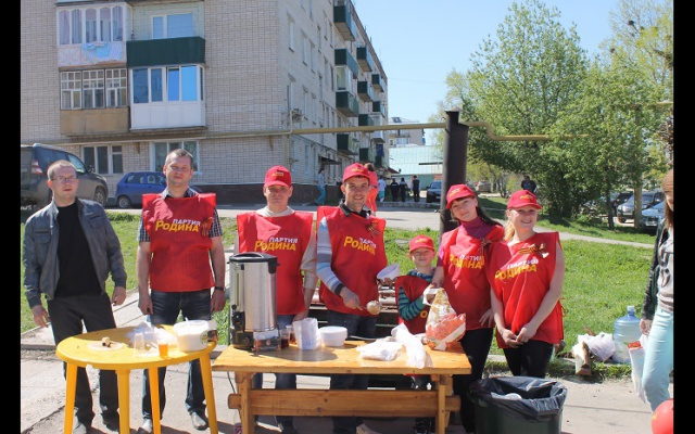 Активисты партии "РОДИНА" из села Сосновское Нижегородской области в День Победы устроили для односельчан праздник. На одной из самых оживленных площадей в центре села прошел согласованный с властями праздничный митинг. Социал-патриоты предлагали односельчанам отведать вкусной солдатской каши из полевой кухни и горячего чая и вместе спеть под гармонь любимые песни военных лет.