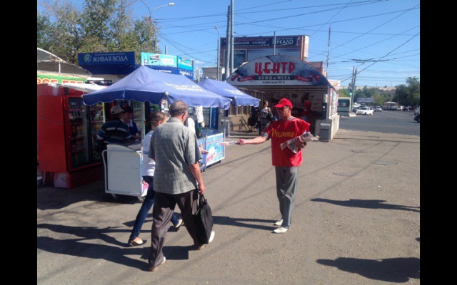 6 сентября 2014 года региональное отделение партии "РОДИНА" в Оренбургской области и местные отделения партии в Ленинском и Дзержинском районах города Оренбурга провели совместные пикеты по раздаче листовки регионального отделения.