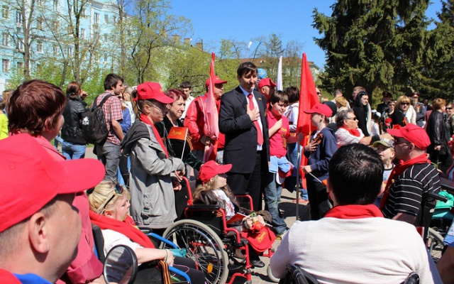 С главной площади поселка Олег Чесноков сразу отправился в Дзержинск, где вместе с другими соратниками по партии принял участие в торжественном митинге и шествии, посвященных 69-годовщине окончания Великой Отечественной войны.