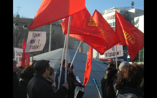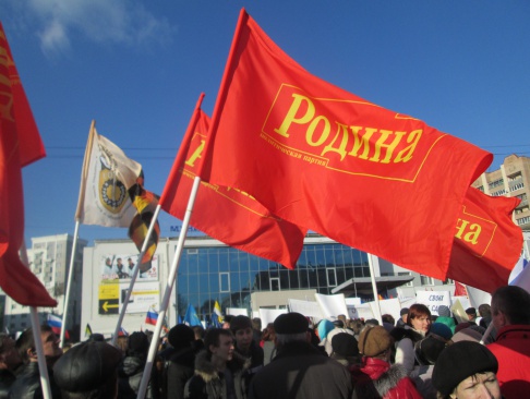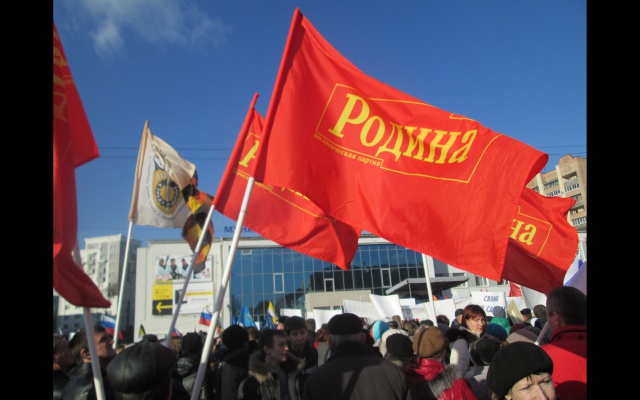 Принимало участие в митинге и региональное отделение партии "РОДИНА". С флагами партии, Добровольческого движения особого назначения (ДОН) в поддержку армии, флота и оборонно-промышленного комплекса, с плакатами: "Севастополь не отдадим!", "БАНДЕРлоги не пройдут!", "Крым мы с тобой", "Своих не бросаем!", на митинге присутствовали более полусотни соратников.
