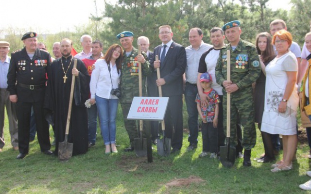 В числе первых, деревья на алее Славы высадили почетные гости: Павел Кузьмич Клетнёв (1924 года рождения) - ветеран ВОВ, героический защитник блокадного Ленинграда, награждён орденом "За оборону Ленинграда", орденом "За освобождение Вены", орденом "За победу над Германией"; Евгений Драгунов - председатель местного отделения межрегиональной общественной организации "Союз десантников" города Казани, Марат Абдрафиков - председатель общественной организации морских пехотинцев "Тайфун" в Республике Татарстан, иерей Анатолий - настоятель храма Богоявления Господня.