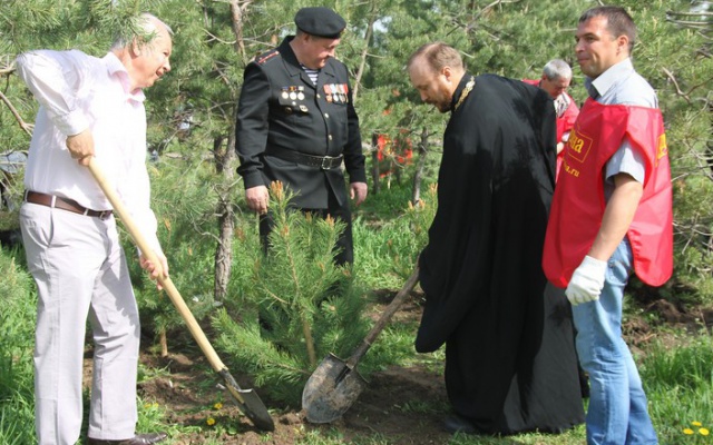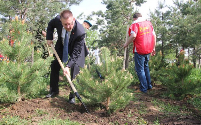 Евгений Драгунов: "Мы сегодня сделали большое дело - оставили память нашим потомкам, будущим героям России. Мы гордимся не только тем, что создаем условия для приятного отдыха посетителям парка, но и надеемся, что высаженные деревья послужат патриотическому воспитанию молодежи".