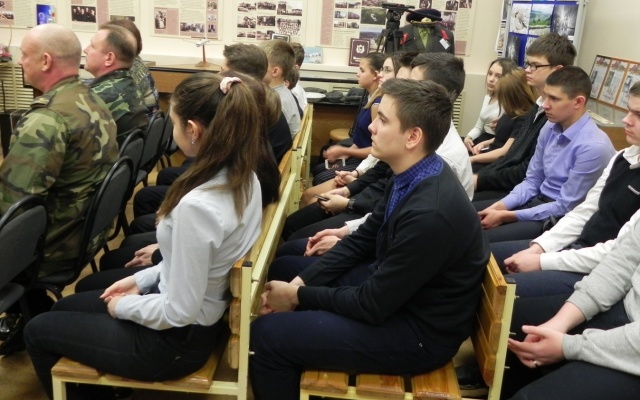 Урок мужества проходил в школьном музее "Возрождение", который с трудом вмещал всех желающих. Представители Самарского регионального отделения партии "РОДИНА" рассказали старшеклассникам о том, каким стало теперь Рязанское гвардейское высшее воздушно-десантное ордена Суворова дважды Краснознамённое командное училище имени генерала армии В.Ф. Маргелова, о боевых спецоперациях и мирных буднях ВДВ, о выпускниках училища, ставших героями, и еще о многом другом. Ветераны спецназа ответили на интересующие ребят вопросы и, под аккомпанемент баяна, исполнили песни о ВДВ и о родном для всех десантников училище. Потом в одном из школьных классов было сладкое чаепитие, которое тоже не обошлось без песен.