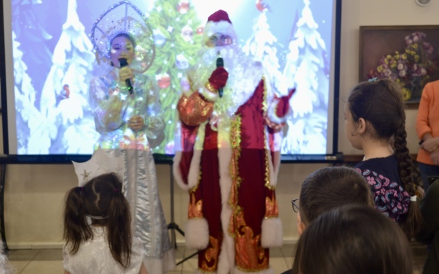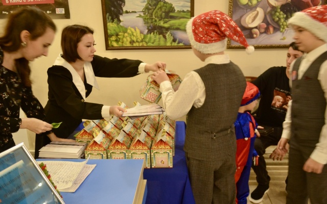 По доброй традиции Владимиром Сухаревым были вручены каждому ребенку сладкие новогодние подарки. Праздник завершился просмотром мультипликационного фильма "Северные амуры", который подарил ребятам кинотеатр "Иллюзион".